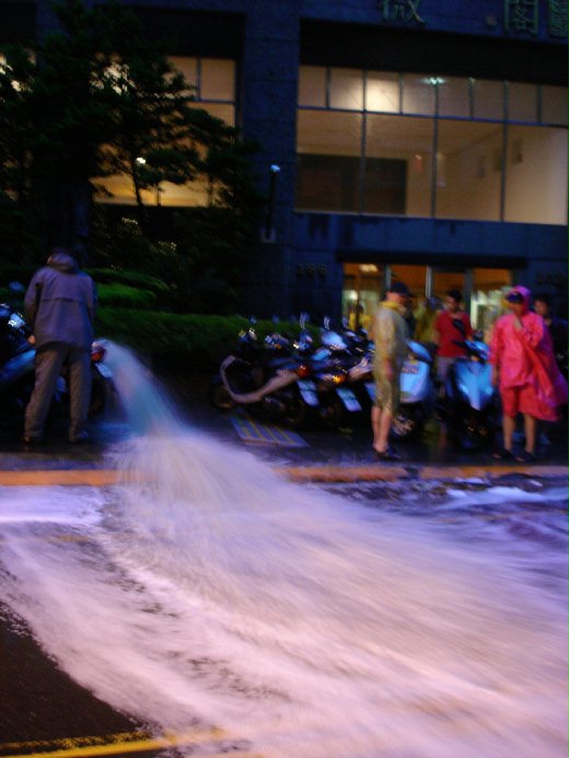 星期日,一早等雨勢漸緩後,大家在廣播號召下,就無論老少、小姐通通投入的清理污穢不堪的家園清潔工作。居民忙著刷刷洗洗,手推車、娤水桶、塑膠袋、掃把、拖把、推水具等等各種工具紛紛出籠。