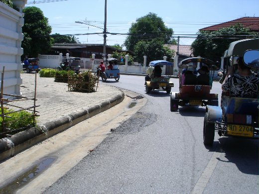 而在泰國, 台灣旅行社安排 【大城古都風情之旅】 有這麼一項「 哈雷機車巡古跡 」,文宣上說是 哈雷機車巡古跡之旅, 可以讓你 彷彿重回當年,體驗一下當年意氣風發的士兵在巡遊古城牆。 說來還真讓我心養養的 !!