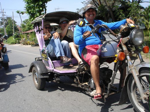 穿人字拖泰國牌的哈雷機車巡古跡