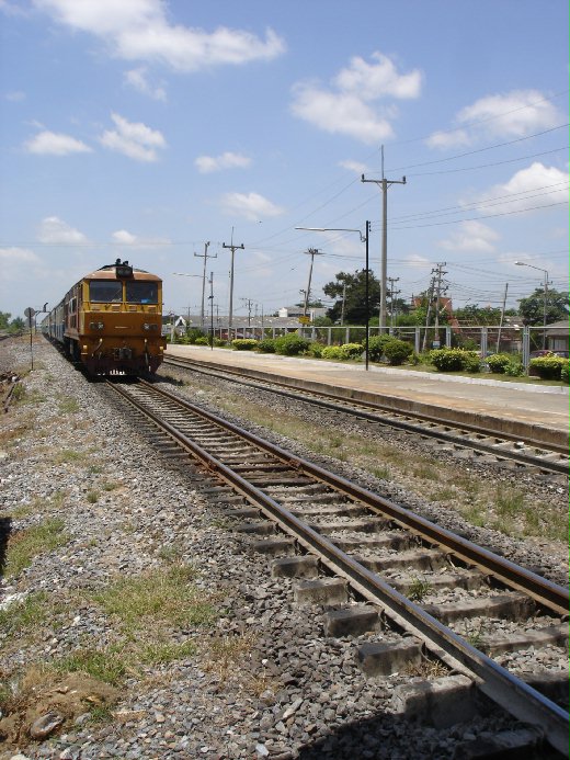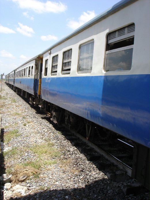 那裝在半封式保利龍盒上的原來是鐵路便當。看起來很可口,飯量不大,搭配著煎荷包蛋和豬肉屑肉、幾片刺瓜,就是泰式便當了。我心猜想這便當一盒25銖, 竟然只是15銖,還比想想得便宜多了!