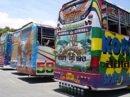 泰國的遊覽車,還有「黃昏牌冷氣」 之稱, 晚上才變要涼。黃昏牌冷氣還不錯啦!有一次,我參加旅行團,黃昏時脫隊。隔天,上了旅行車,導遊就說:很可惜,我昨天脫隊,因為昨晚新增加了一個行程「洗三溫暖」。