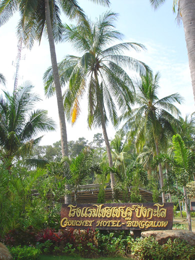 這晚,我住進1200銖一晚的Chai Chet Bungalous(柴切飯店)。這是一間很平凡的飯店,店名倒是和 Chai Chet Cape 海角同名。因 Chai Chet Cape 也僅有這家飯店,此地正是欣賞落日的極佳點。