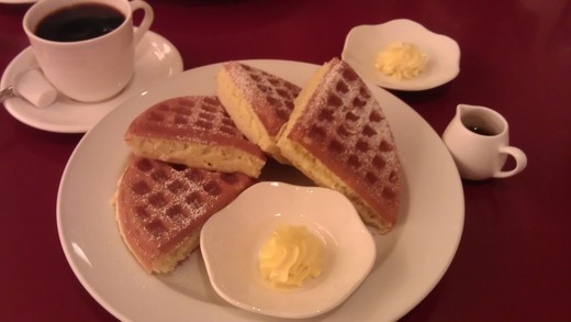 在心情低潮的午后,走進鬆餅店,點了一杯咖啡,吃了一盤鬆餅。