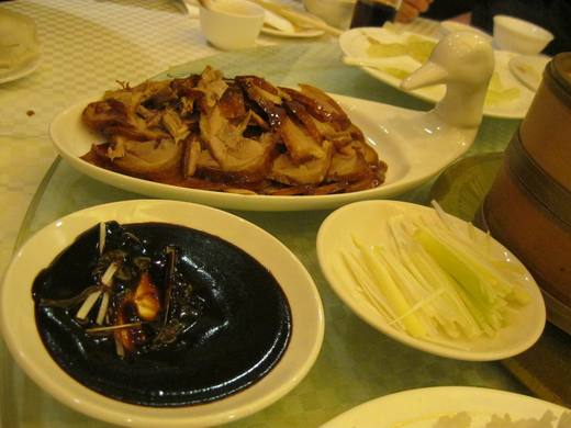 北京全聚德烤鴨,鴨腥味很重。還是咱們台灣的烤鴨3吃讚~