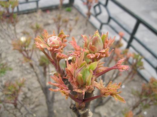 牡丹花這時節剛發新芽,也看到花苞了...我去得早了...得過一陣子才開得茂盛