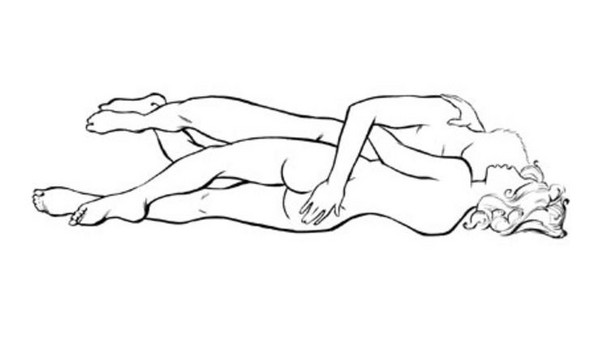女生側躺在床上,身體微彎,讓他從後面進入妳的身體,這個體位將讓妳感到滿滿的溫暖與被填滿,他同時可以撫摸妳撩人的胸部,激起你們更深的慾望。