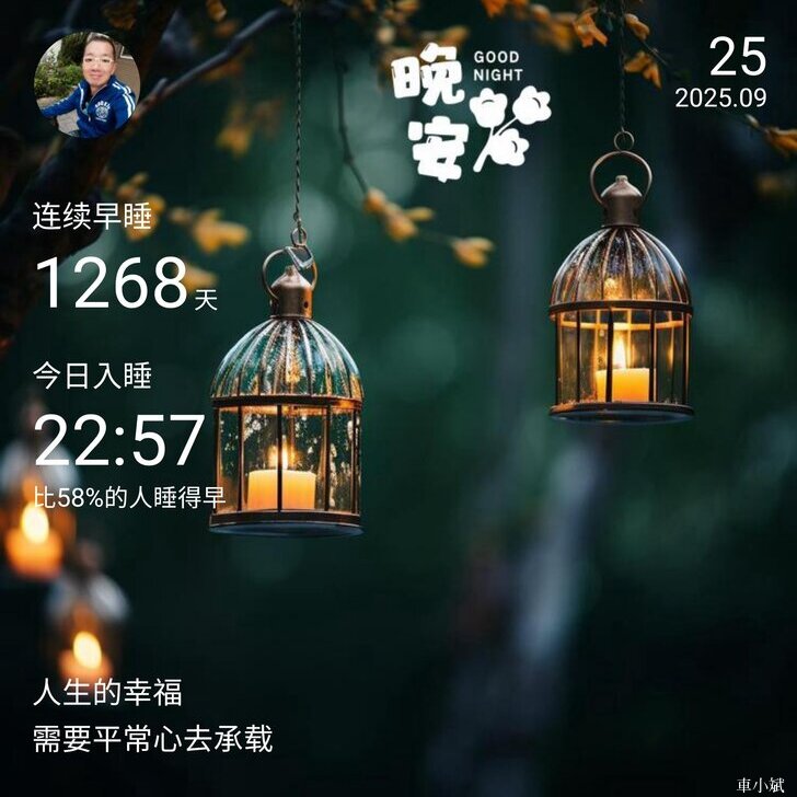 ⬆️晚安打卡圖,2025.09.25,人生的幸福,需要平常心去承載