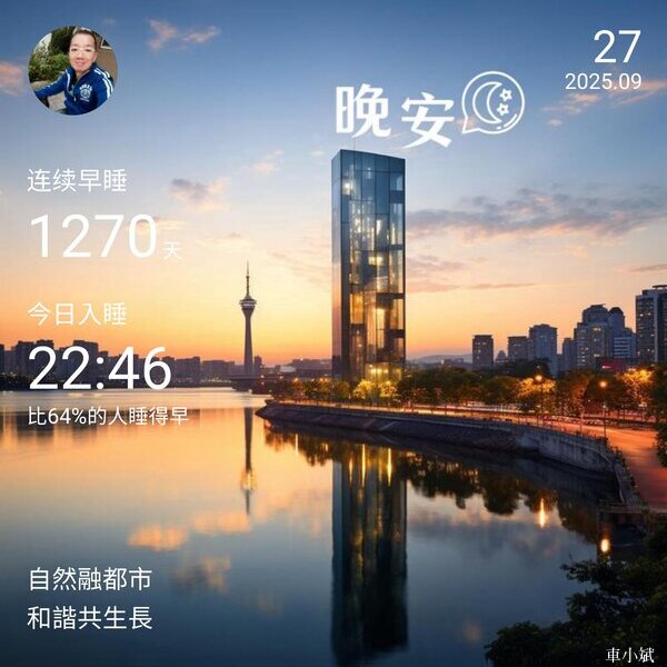 ⬆️晚安打卡圖,2025.09.27,自然融都市,和諧共生長
