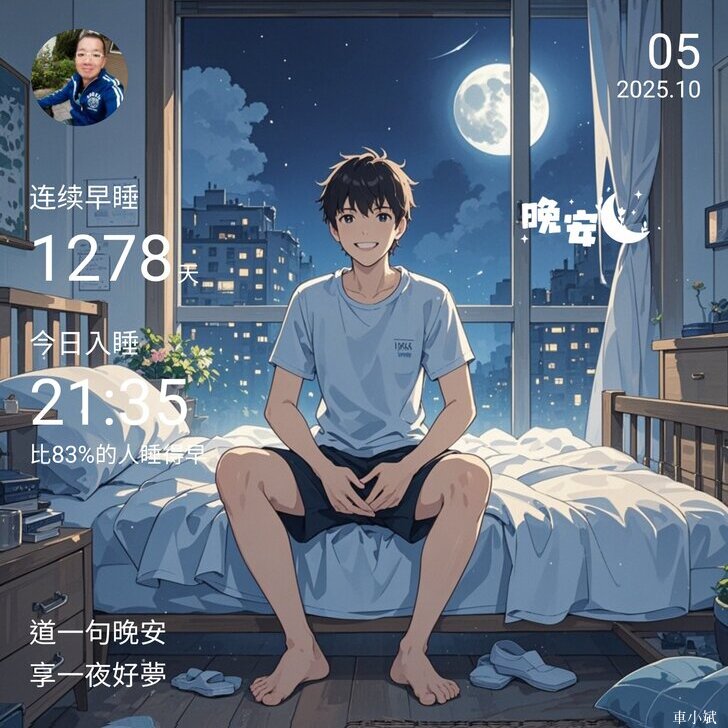 ⬆️晚安打卡圖,2025.10.05,道一句懼晚安,享一夜好夢