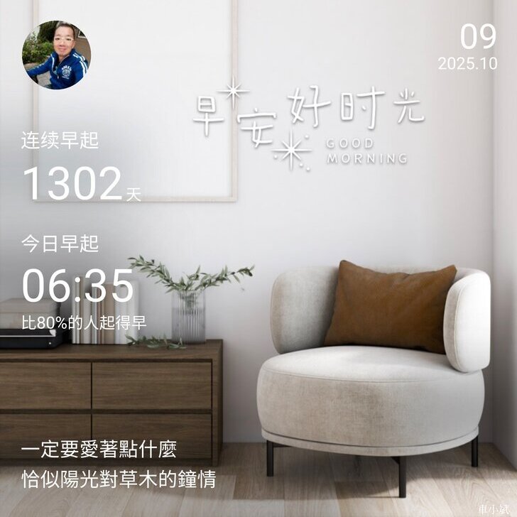 ⬆️早安打卡圖,2025.10.09,一定要愛著點什麼,恰似陽光對草木的鍾情