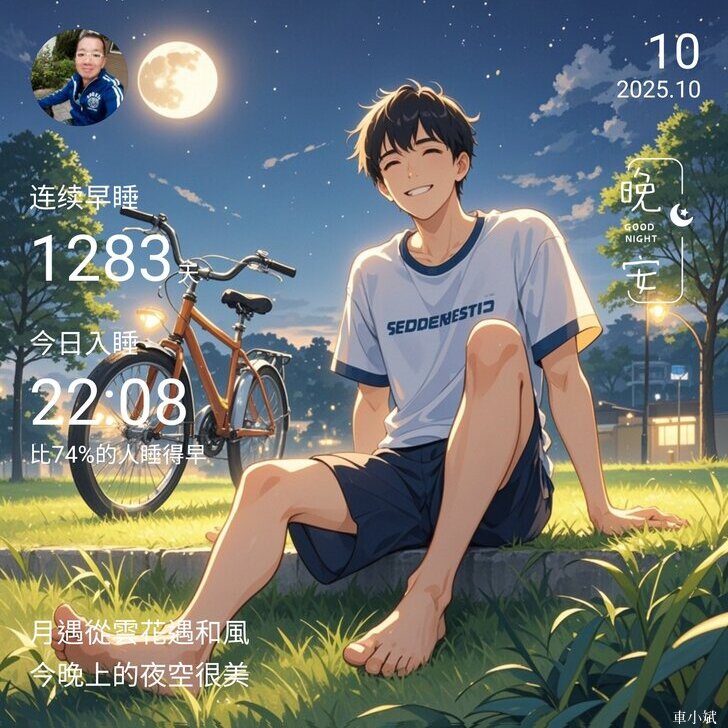 ⬆️晚安打卡圖,2025.10.10,赤腳男孩,今晚上的夜色很美