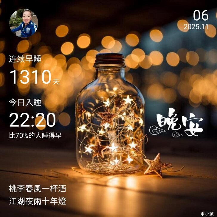 ⬆️晚安打卡圖,2025.11.06,桃李春風一杯酒,江湖夜雨十年燈