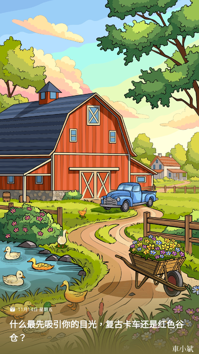 數字填色(Paint by Number),2025.11.14,什麼最先吸引你的目光,復古卡車還是紅色穀倉?