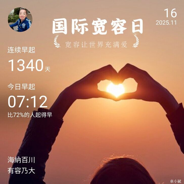 早晚安打卡圖 2025.11.16,今天是國際寬容日