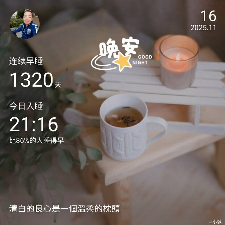 ⬆️晚安打卡圖,2025.11.16,清白的良心是一個溫柔的枕頭