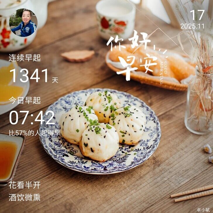 ⬆️早安打卡圖,2025.11.17,花看半開,酒飲微醺