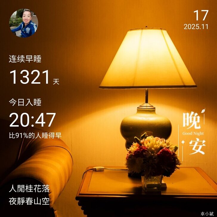 ⬆️晚安打卡圖,2025.11.17,人閒桂花落,夜靜春山空