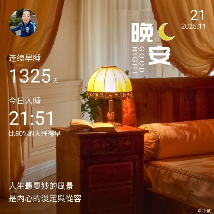 ⬆️晚安打卡圖,2025.11.21,人生最妙的風景,是內心的淡定與從容