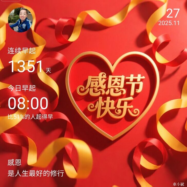 早晚安打卡圖 2025.11.27,今日感恩節