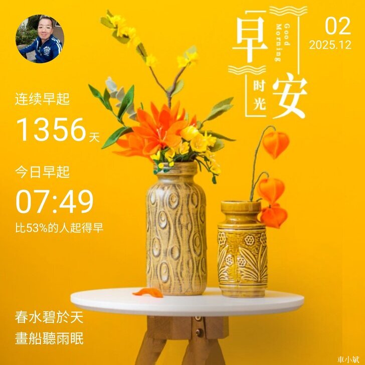 ⬆️早安打卡圖,2025.12.02,春水碧於天,畫船聽雨眠
