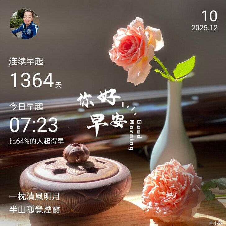 早晚安打卡圖 2025.12.10,優雅從容,心懷遠方