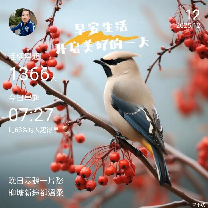 早晚安打卡圖 2025.12.12,晚日寒鴉一片愁,柳塘新綠卻溫柔