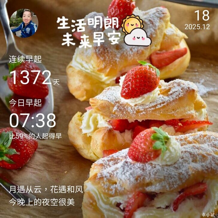 ⬆️早安打卡圖,2025.12.18,月遇從雲,花遇和風,今晚上的夜空很美
