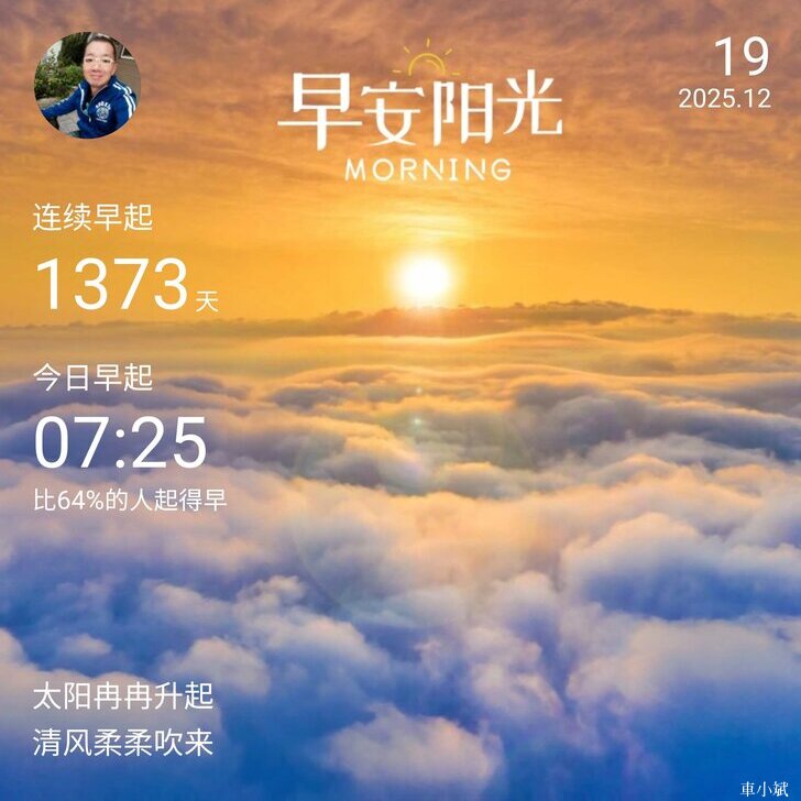 ⬆️早安打卡圖,2025.12.19,太陽冉冉升起,清風柔柔吹來