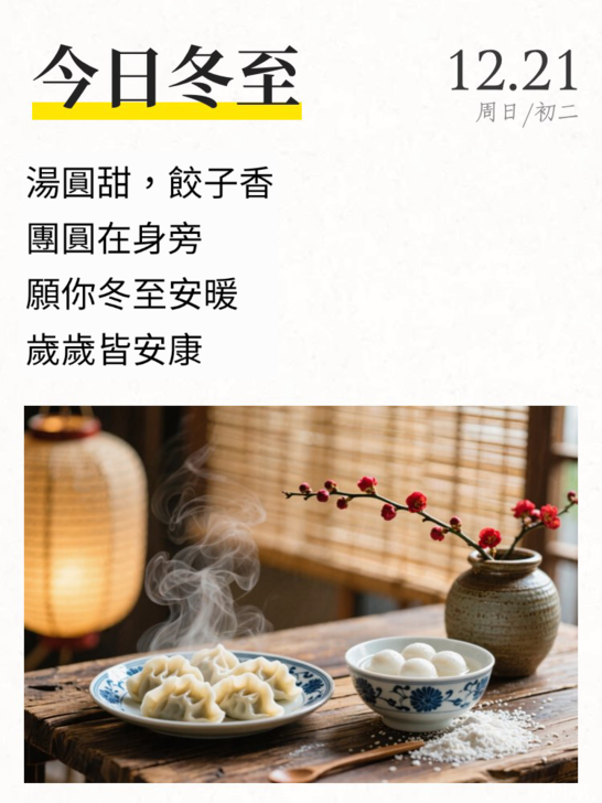 晚安打卡圖 2025.12.21,冬至大如年,人間小團員