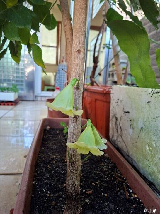 (照片是我種的發財樹開花,海南菜豆樹的花,2025.12.23)