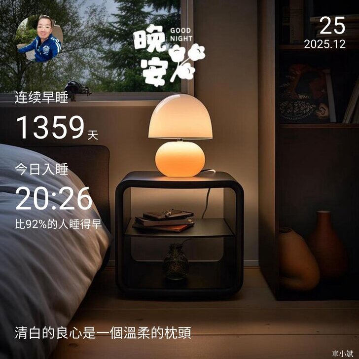 ⬆️晚安打卡圖,2025.12.25,清白的良心是一個溫柔的枕頭