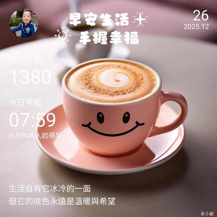 ⬆️早安打卡圖,2025.12.26,生活自有它冰冷的一面,但它的底色永遠是溫暖與希望