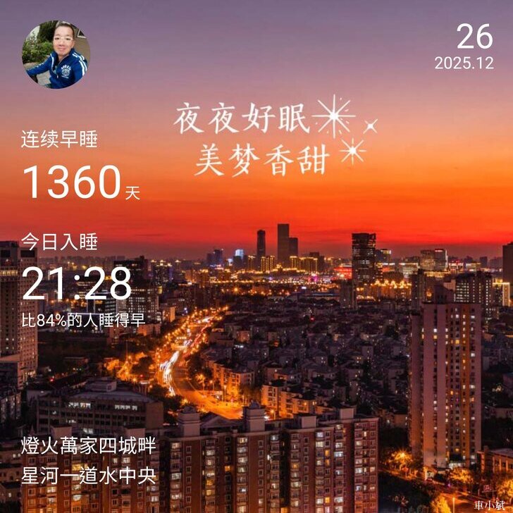 早晚安打卡圖 2025.12.26,燈火萬家城四畔,星河一道水中央