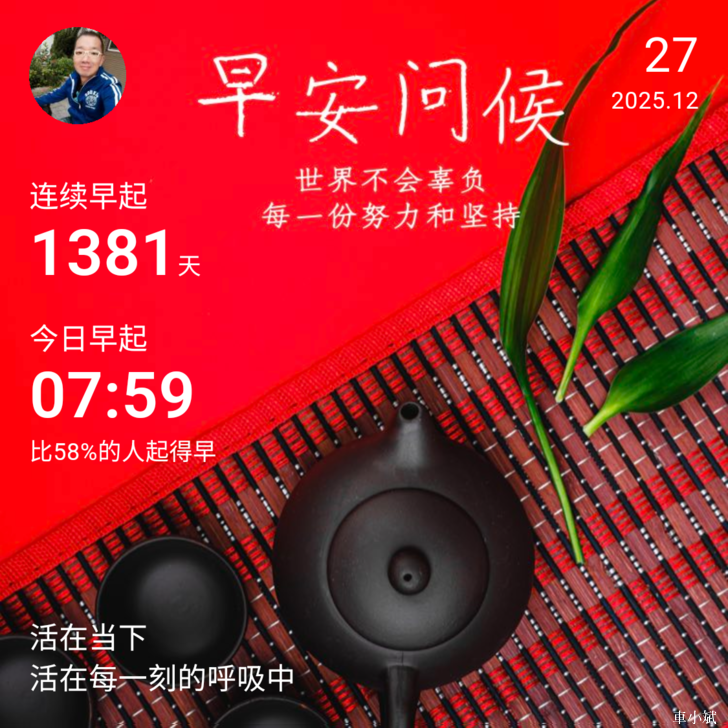 ⬆️早安打卡圖,2025.12.27,活在當下,活在每一刻的呼吸中