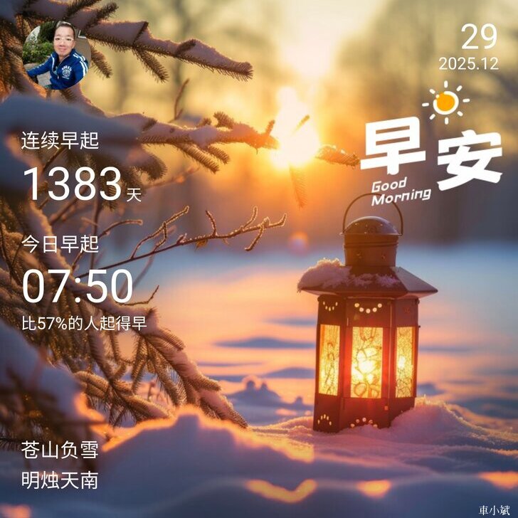 早晚安打卡圖 2025.12.29,蒼山負雪,明燭天南