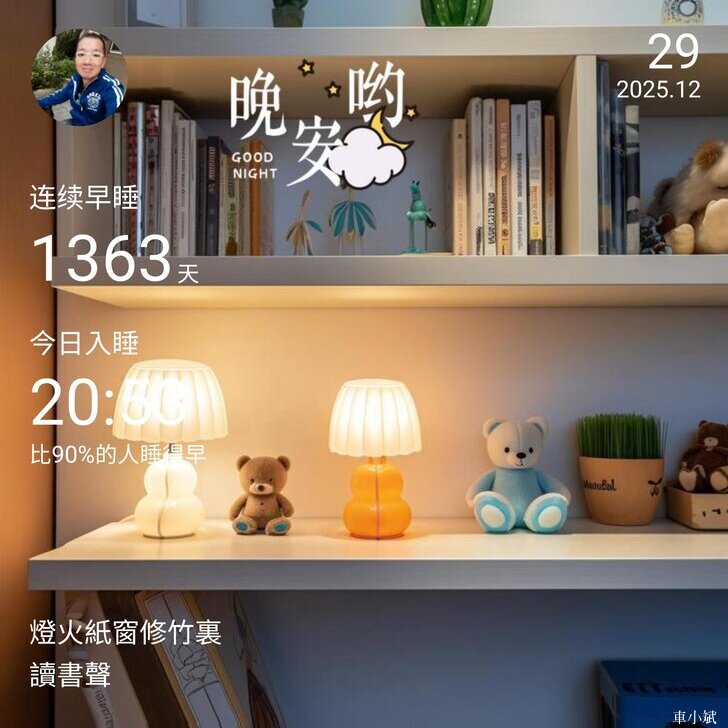 ⬆️晚安打卡圖,2025.12.29,燈火紙窗修竹裏,讀書聲