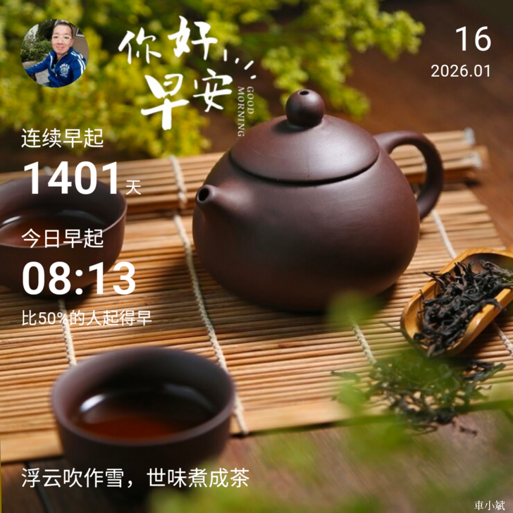 ⬆️早安打卡圖,2026.01.16,浮雲吹作雪,世味煮成茶
