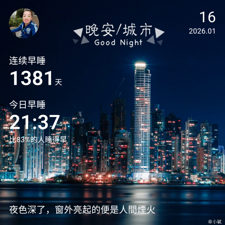⬆️晚安打卡圖,2026.01.16,夜色深了,窗外亮起便是人間煙火