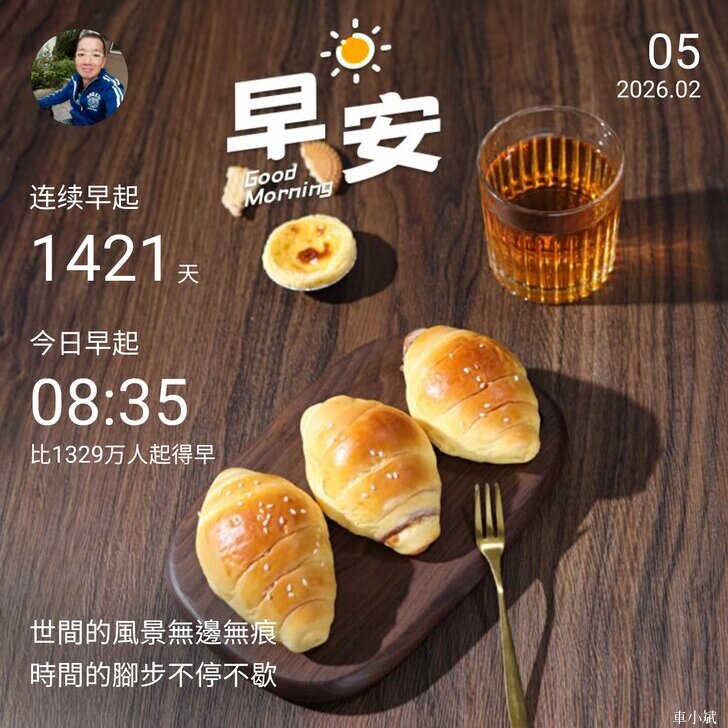 ⬆️早安打卡圖,2026.02.05,世間的風景無邊無痕,時間的腳步不停不歇