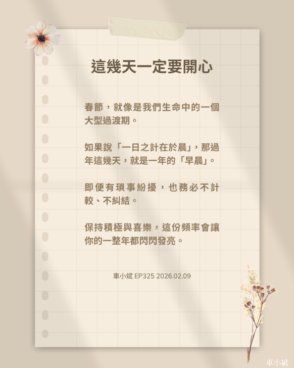 隨著春節腳步近了,大家或許正忙著採買年貨、除舊佈新。但在這忙碌的節奏中,我想問問大家:你的「心」準備好過年了嗎?