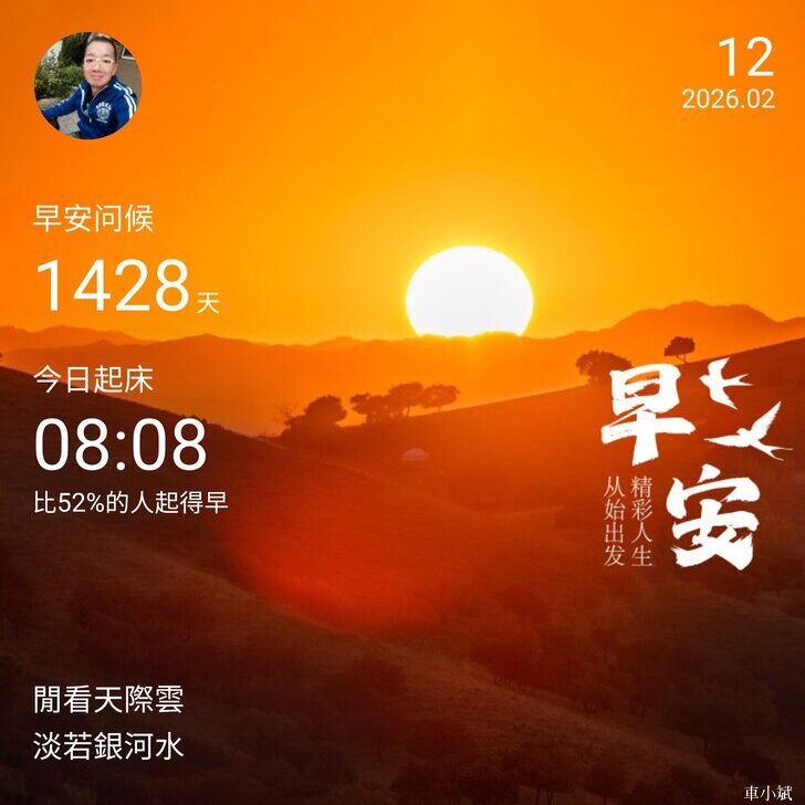 ⬆️早安打卡圖,2026.02.12,閒看天際雲,淡若銀河水
