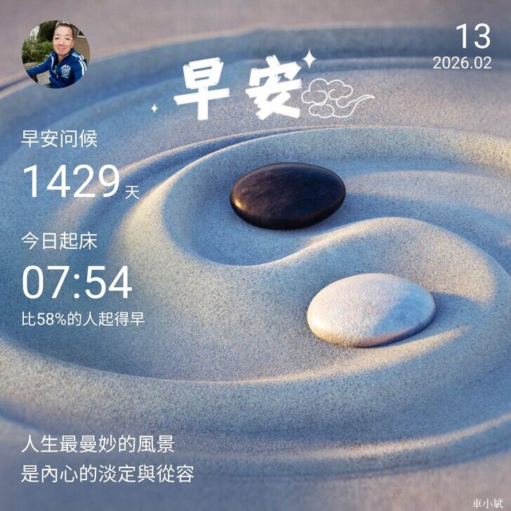 ⬆️早安打卡圖,2026.02.13,人生最曼妙的風景,是內心的淡定與溫柔