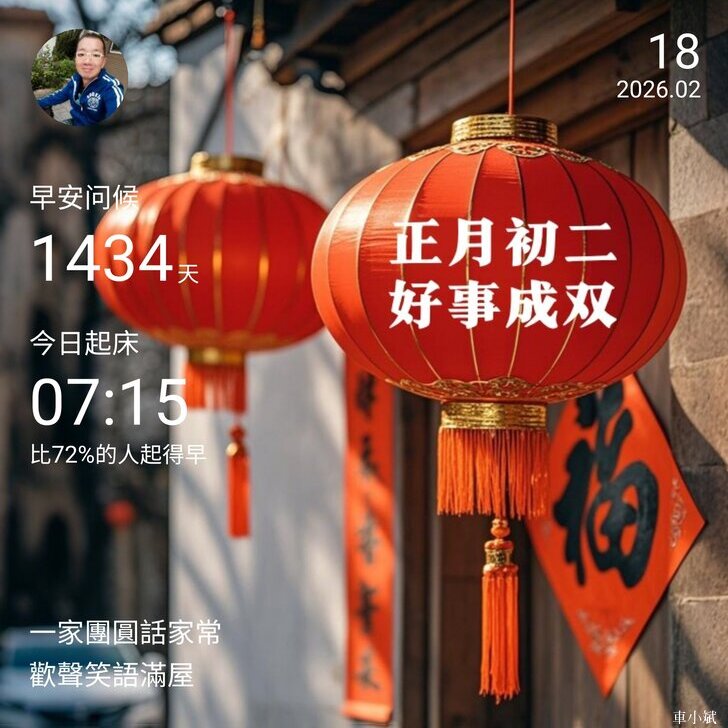⬆️早安打卡圖,2026.02.18,一家團圓話家常,歡聲笑與滿屋
