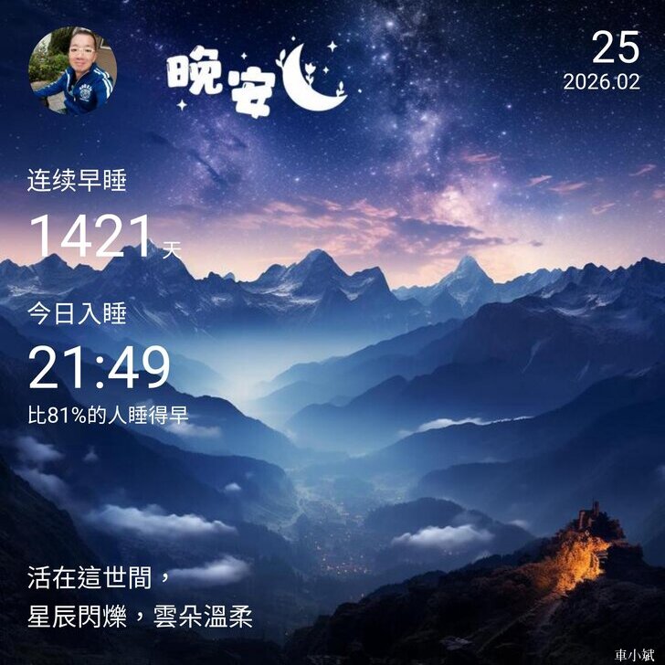 ⬆️晚安打卡圖,2026.02.24,活在這世間,星辰閃爍,雲朵溫柔
