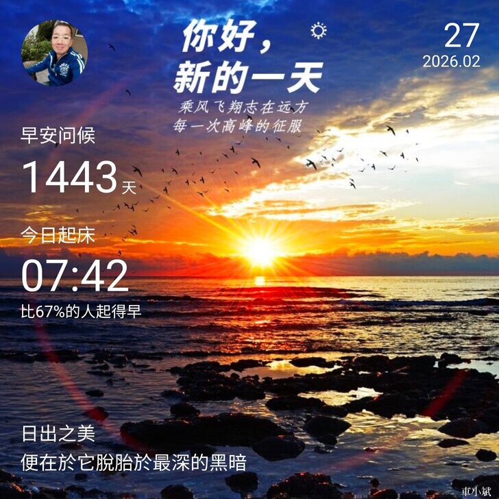 ⬆️早安打卡圖,2026.02.27,日出之美,便在於它脫胎換骨於最深的黑暗