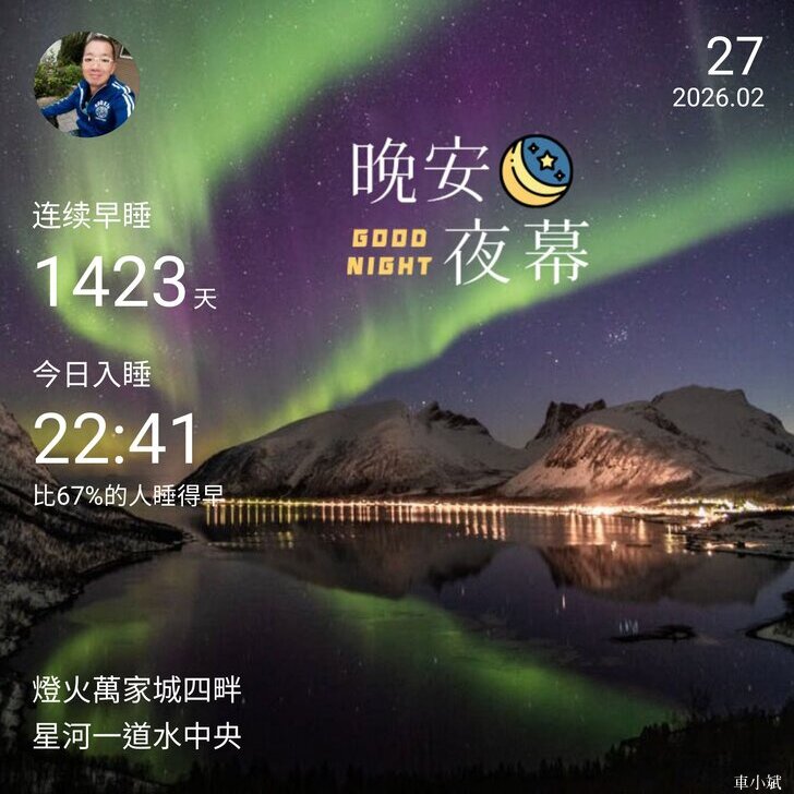 ⬆️晚安打卡圖,2026.02.27,燈火萬家城四畔,星河一道水中央