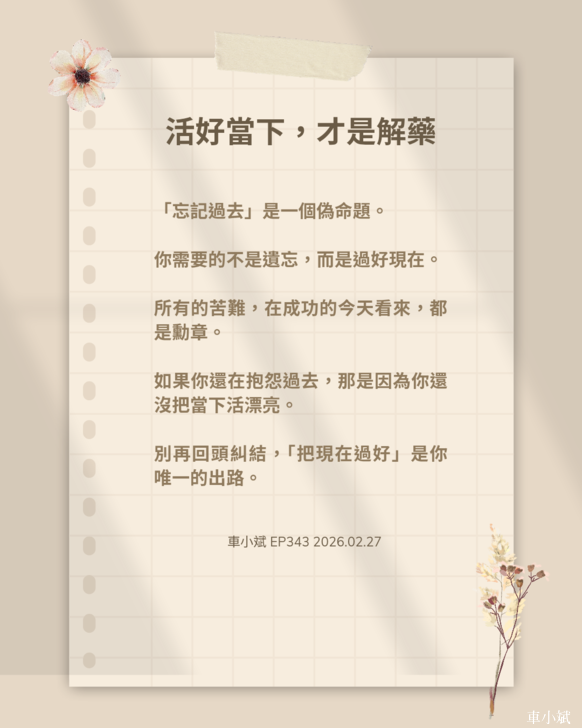 所以,真正的智慧不是逃避過去,而是活在當下。
