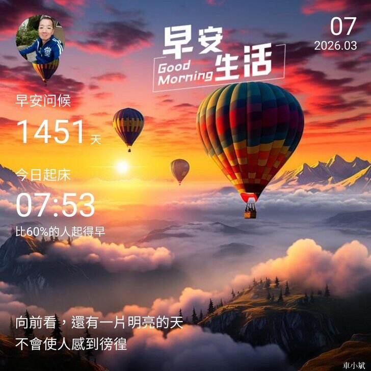 ⬆️早安打卡圖,2026.03.07,向前看,還有一片明亮的天,不會使人感到徬徨