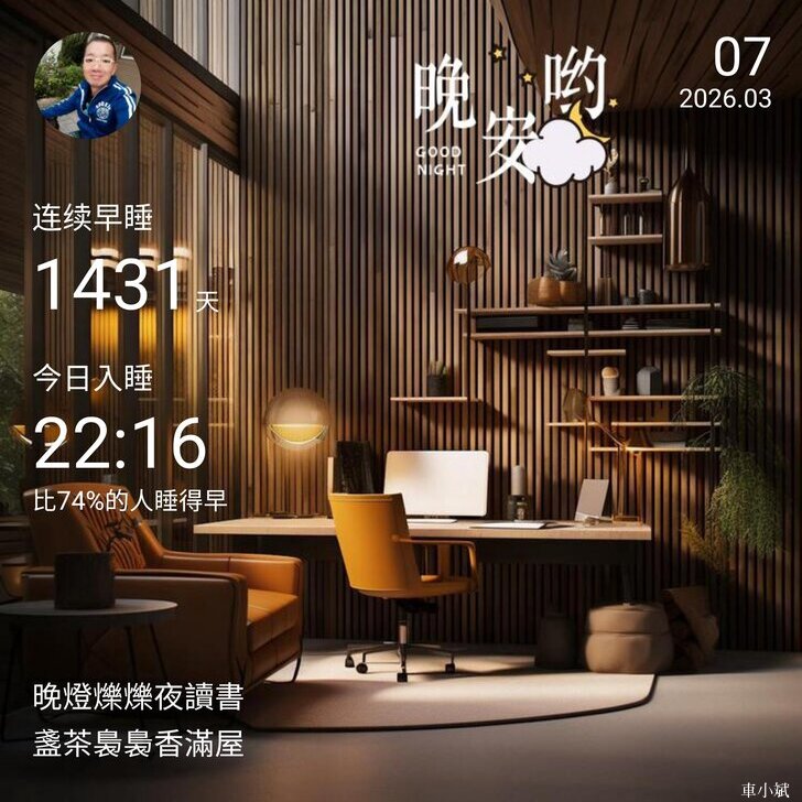 ⬆️晚安打卡圖,2026.03.07,晚燈爍爍夜讀書,盞茶裊裊香滿屋