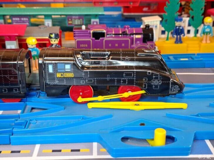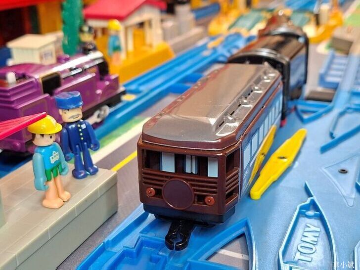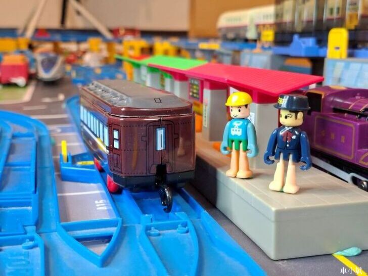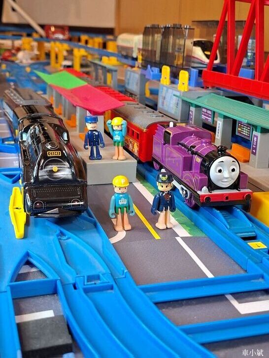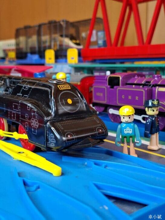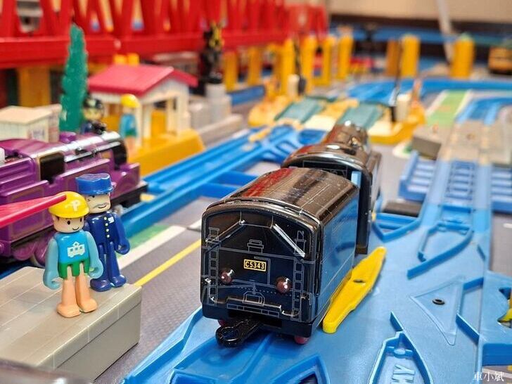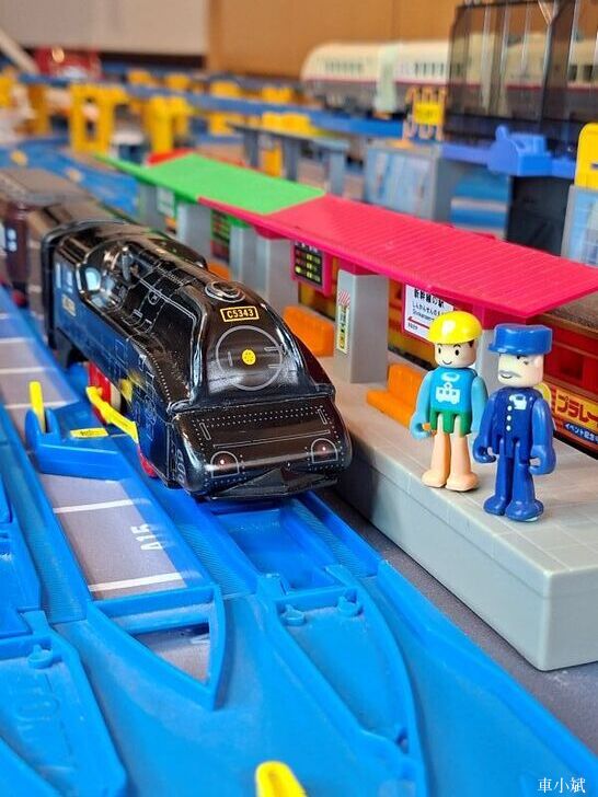 Plarail 唯一的鐵皮車,Plarail C53-43號機與 Maite 39型展望車,這組是Plarail 40週年紀念車,1999年發行。(照片右邊的紫色車頭是湯瑪士小火車裡面的萊恩)